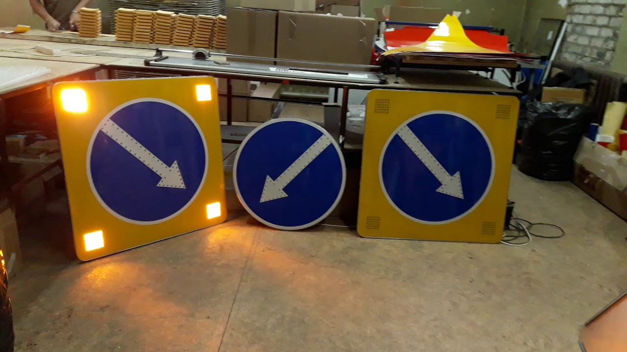 В наличииИмпульсный светодиодный знак на щите 4.2.1 III т/р, ПОВОРОТНАЯ СТРЕЛКА